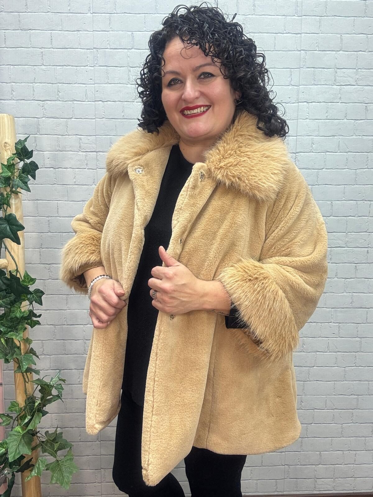 Este abrigo negro de peluche es la prenda perfecta para quienes buscan elegancia, confort y un estilo actual que favorece especialmente a mujeres curvy y de talla grande. Su tejido suave tipo peluche ofrece una sensación cálida y envolvente desde el primer momento, mientras que su corte amplio y fluido aporta libertad de movimiento y un ajuste cómodo sin renunciar a la sofisticación.