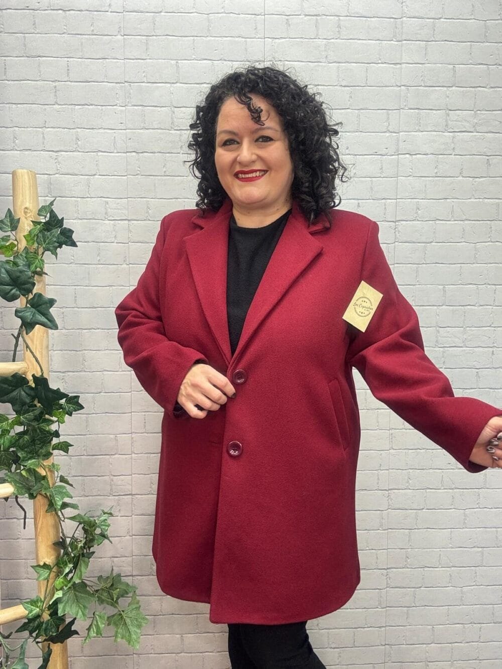 Este abrigo rojo burdeos en tallas grandes es la prenda perfecta para dar color, estilo y sofisticación a tus looks de temporada. Su diseño clásico de corte recto está pensado para favorecer la silueta curvy, aportando caída, estructura y comodidad sin marcar.
