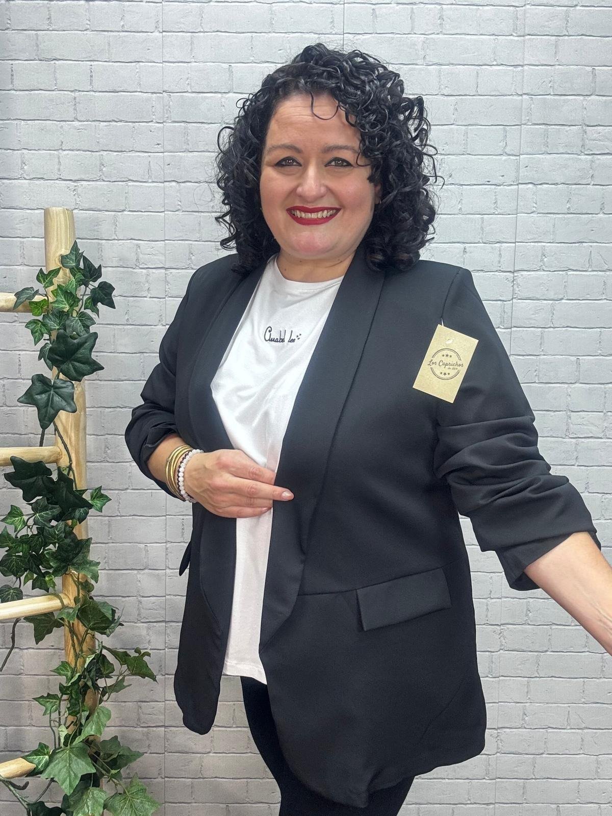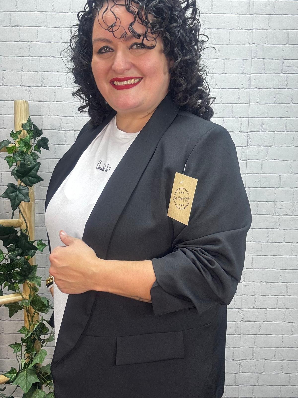 Dale a tu armario ese toque pulido y sofisticado con esta americana negra para mujer curvy, una prenda esencial que combina comodidad, elegancia y versatilidad a partes iguales. Su solapa clásica, el diseño limpio y la manga ligeramente fruncida aportan un estilo moderno sin renunciar al encanto del blazer tradicional.