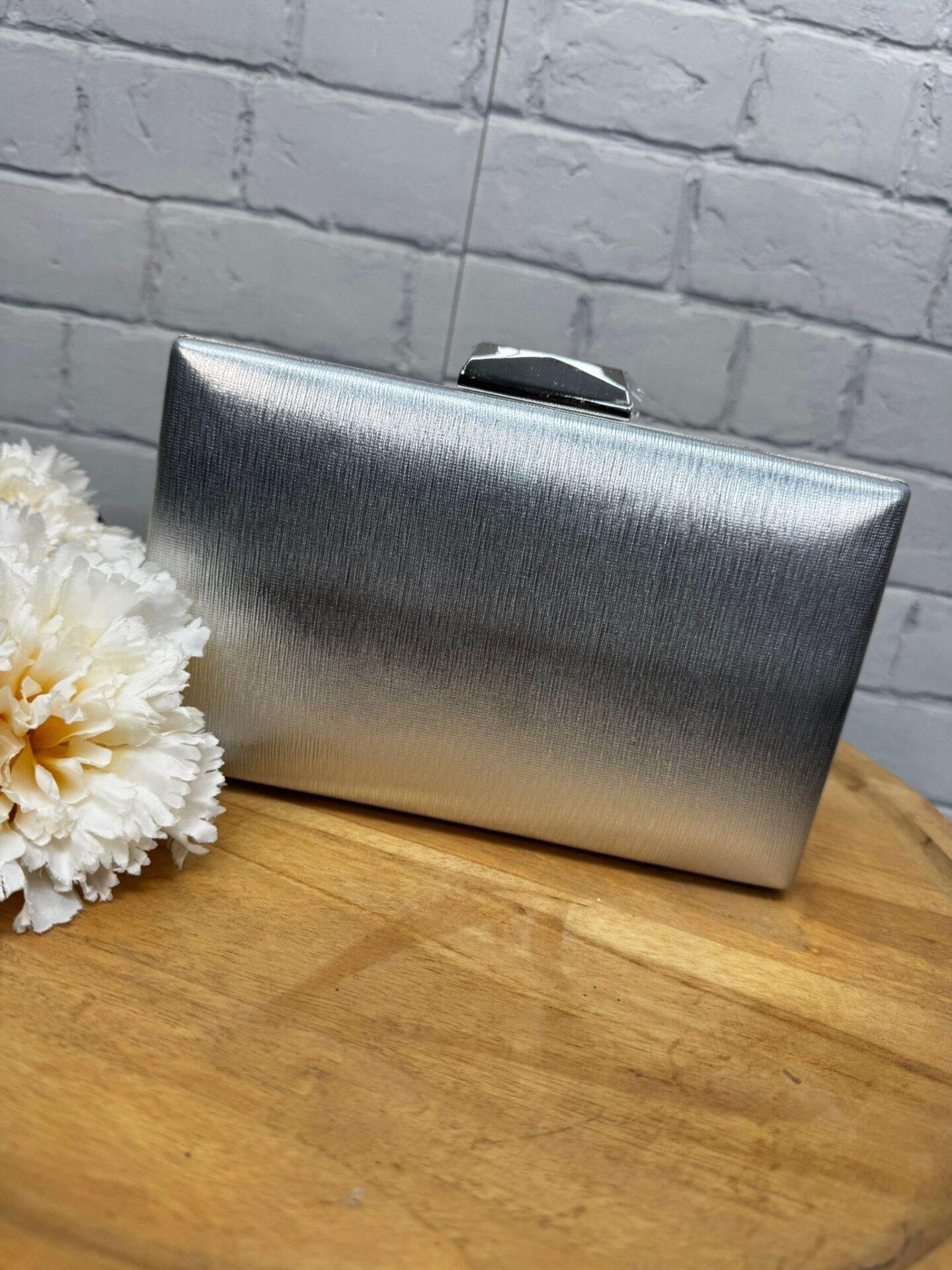 Brilla con elegancia con este clutch metálico de fiesta, un accesorio imprescindible para completar tus looks de noche. Su diseño rígido con textura satinada y efecto entrelazado lo convierte en una pieza moderna y atemporal, perfecta para bodas, cenas o cualquier ocasión especial.