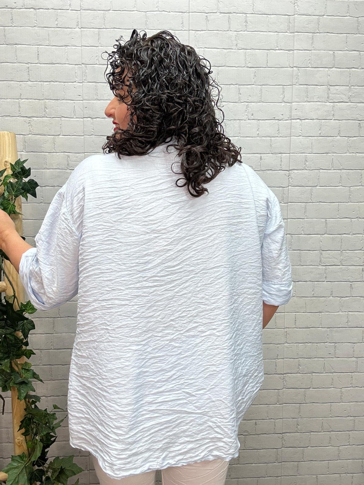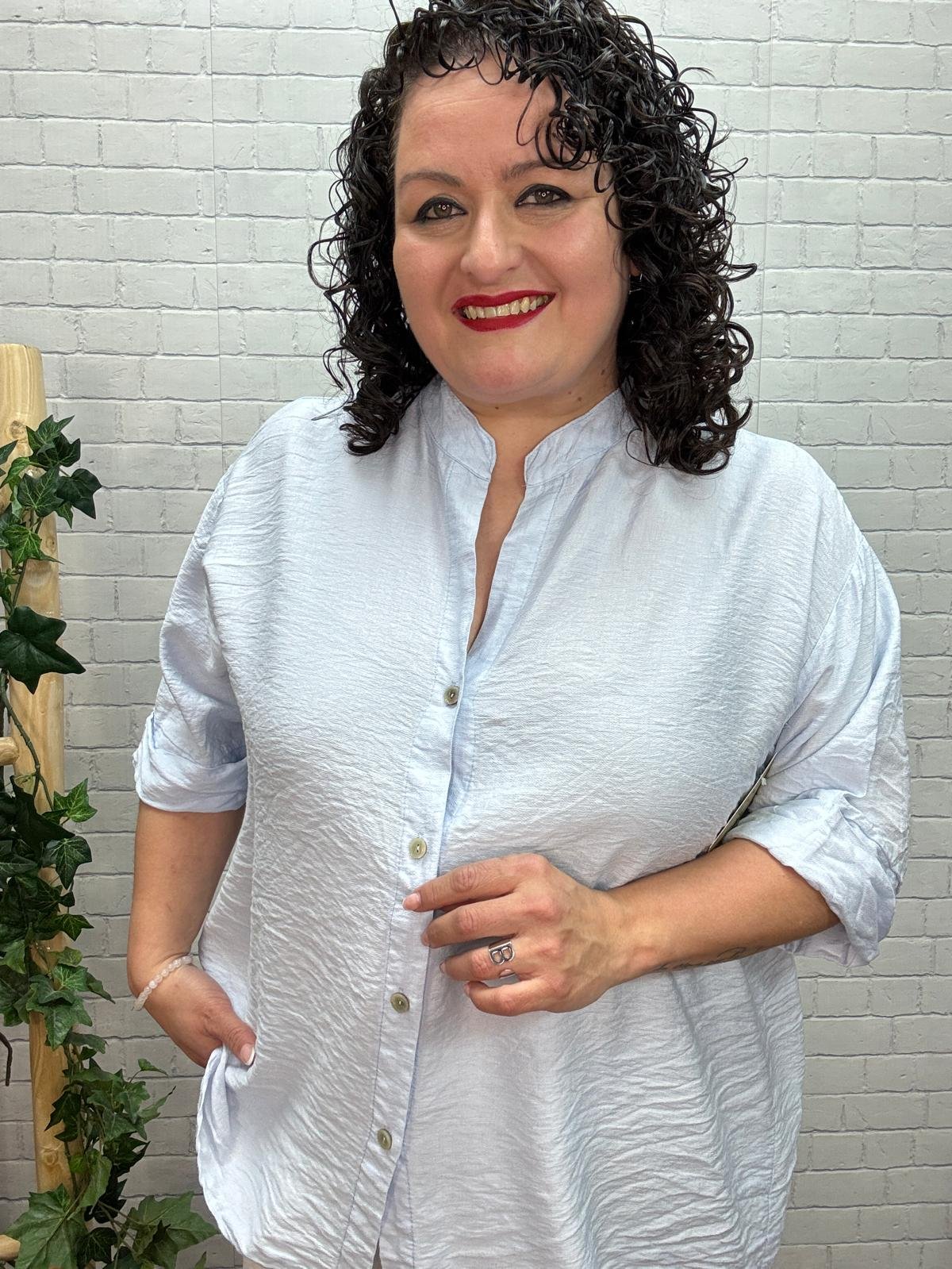 Esta camisa fluida de mujer en color celeste es una prenda imprescindible para quienes buscan comodidad, estilo y un diseño favorecedor en moda curvy. Su corte amplio y ligero está pensado para adaptarse suavemente al cuerpo, proporcionando libertad de movimiento y una silueta elegante y relajada.