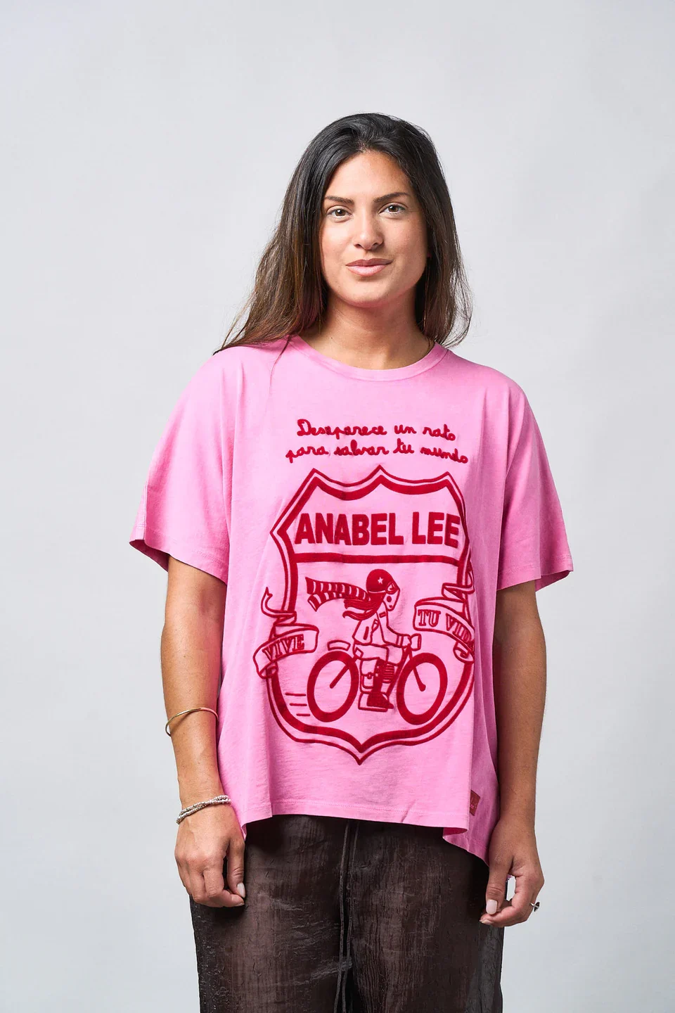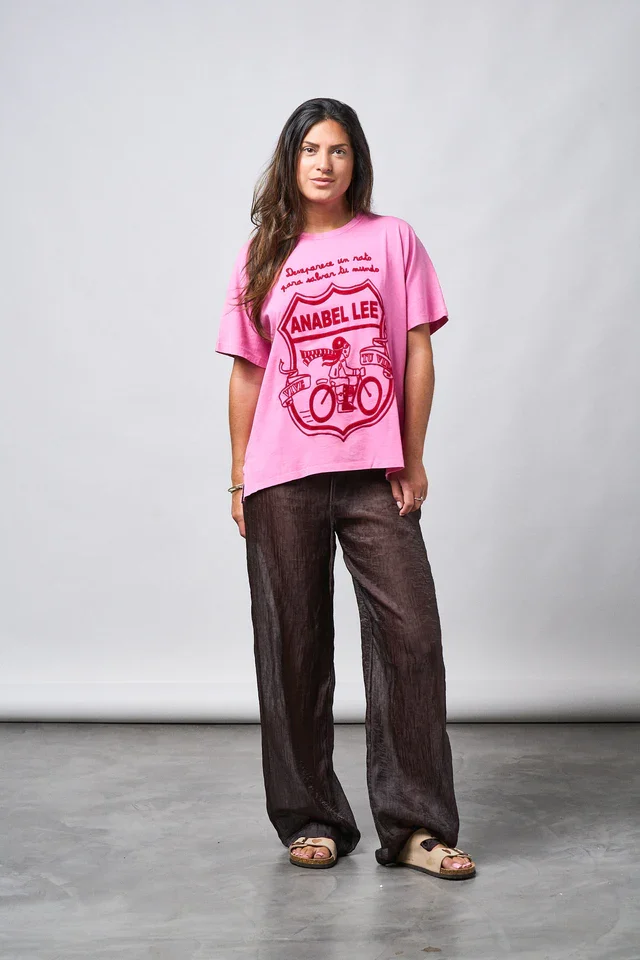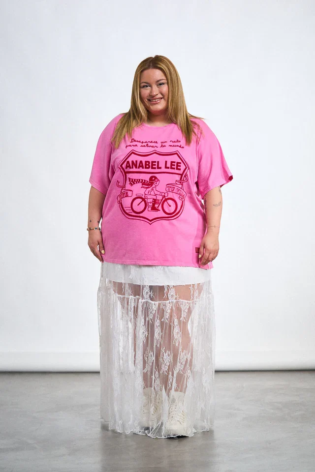 Atrévete a desaparecer un rato para reconectar contigo con esta camiseta rosa vibrante de Anabel Lee, pensada para mujeres que viven su vida con pasión. Su diseño oversize con ilustración frontal en terciopelo transmite libertad, movimiento y empoderamiento, mientras que su suavidad te envuelve en comodidad absoluta. Ideal para combinar con jeans, faldas o biker shorts, es esa prenda versátil que te acompaña en tus días más creativos. Su corte favorecedor y sus tallas inclusivas la convierten en un must para cualquier armario curvy. Además, al ser de edición limitada, es tan única como tú.