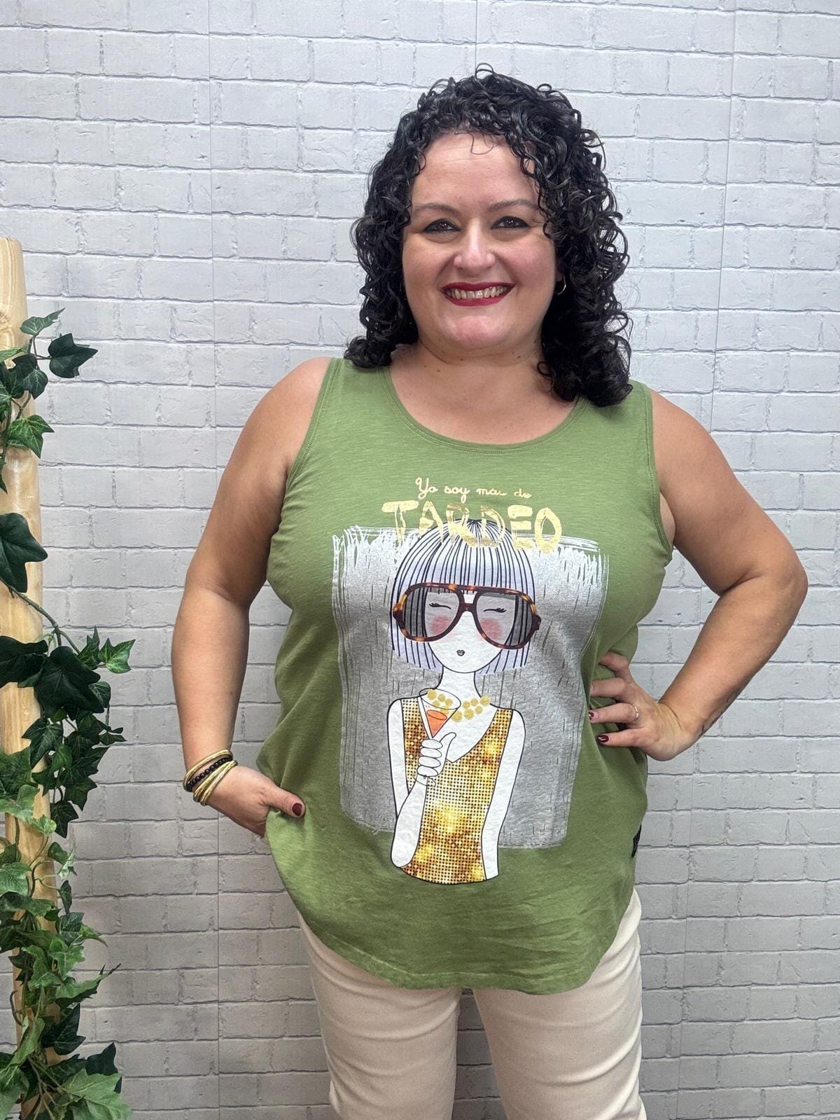 La Camiseta Tardeo de Anabel Lee es perfecta para esas mujeres que disfrutan de los pequeños momentos con estilo y humor. Su diseño sin mangas, fresco y ligero, es ideal para los días más cálidos o para combinar con chaquetas en entretiempo.