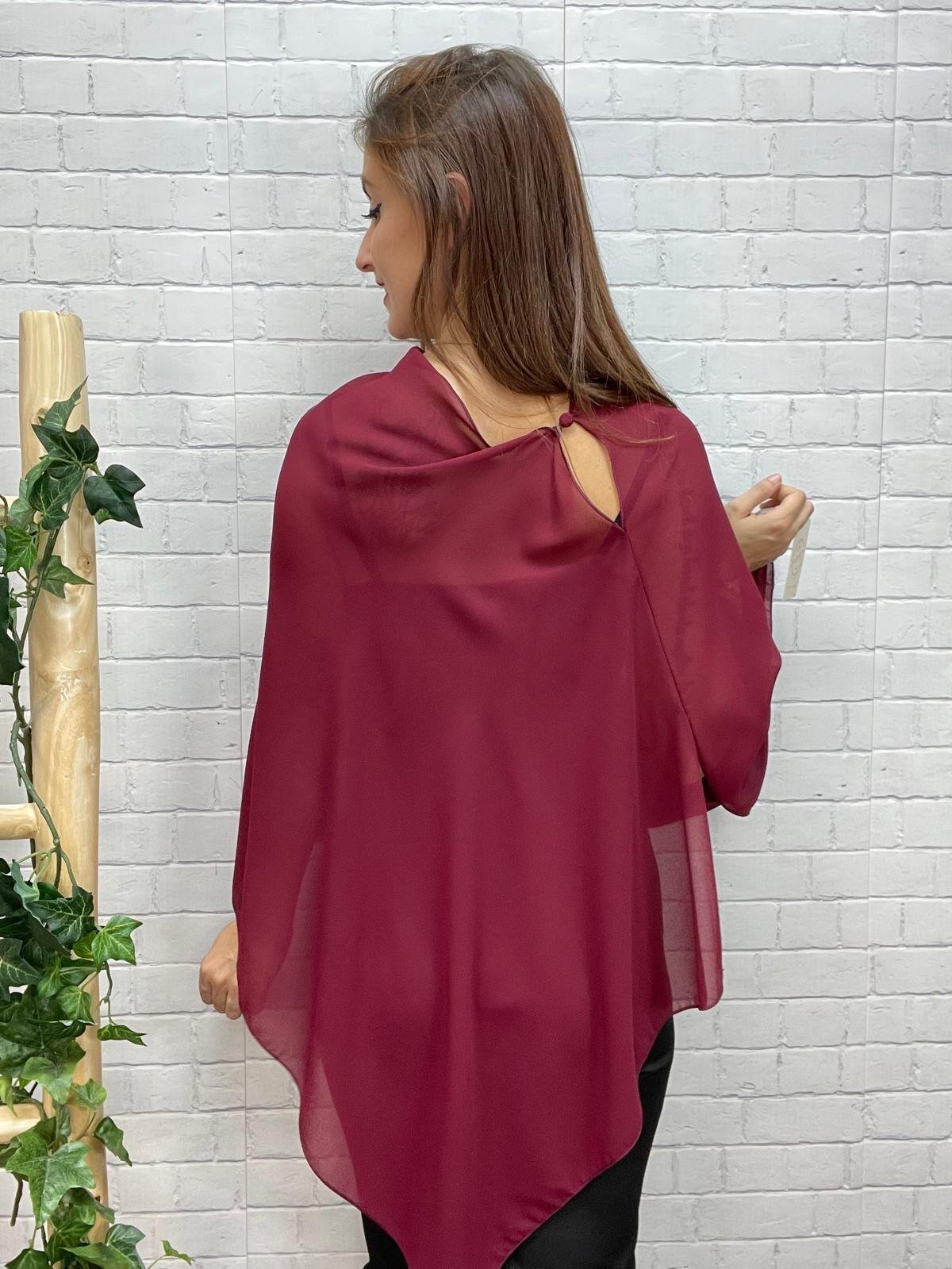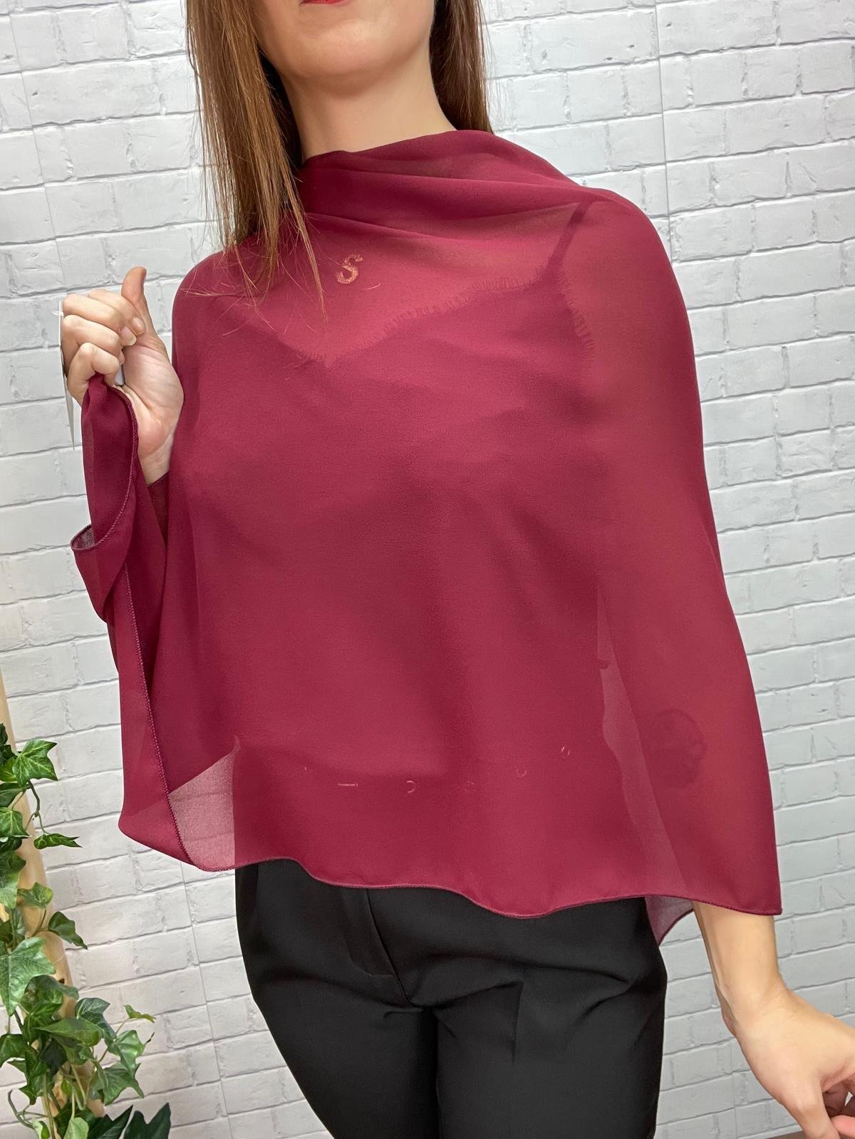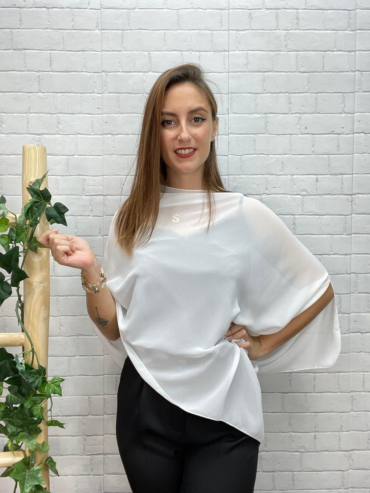 •Capa de gasa ligera con caída elegante y diseño asimétrico. Disponible en varios colores, perfecta para invitadas o looks de noche.