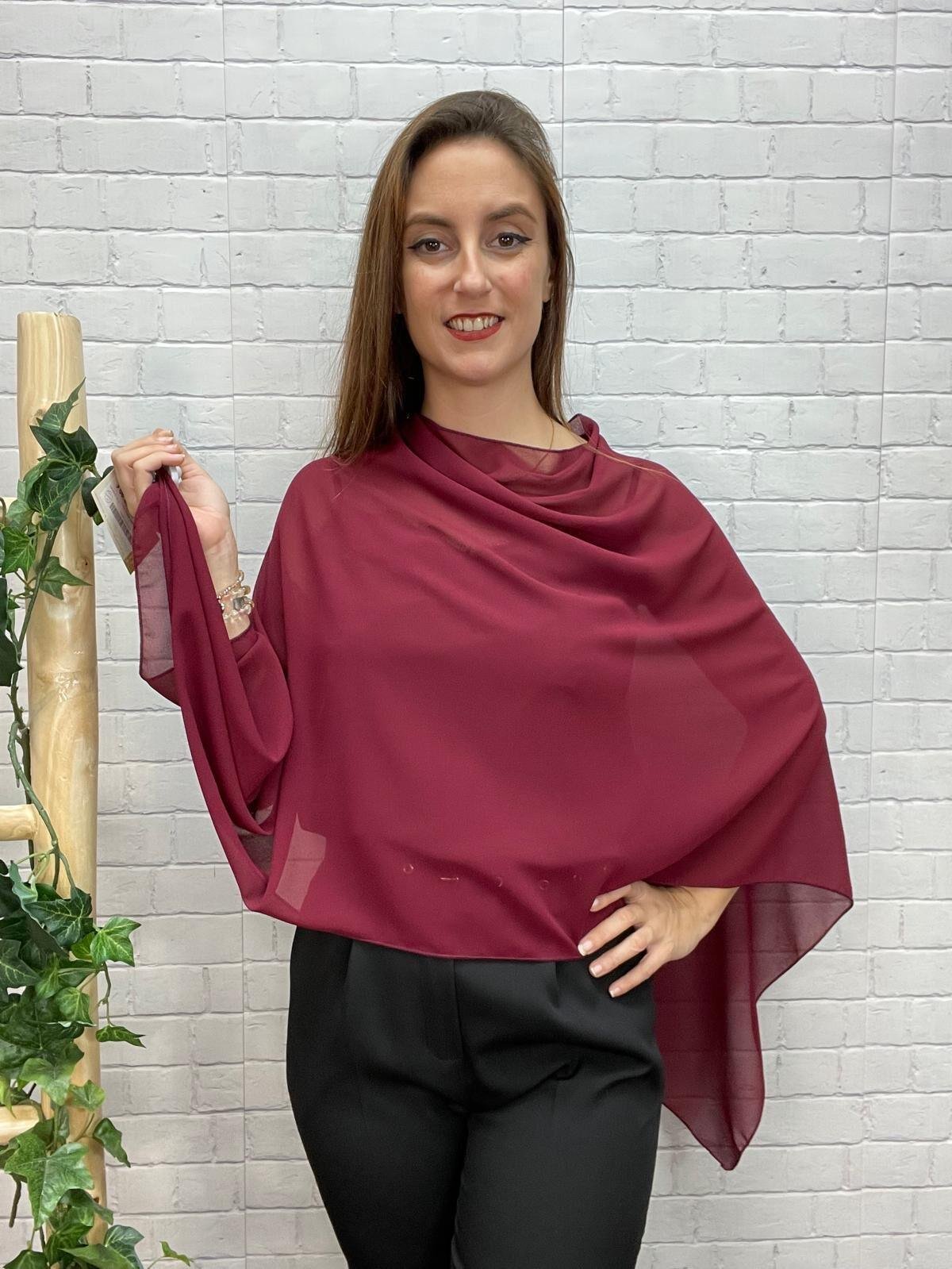 La capa de gasa fluida para eventos es el complemento ideal para elevar cualquier outfit con elegancia y sofisticación. Confeccionada en gasa vaporosa y semitransparente, ofrece una caída suave que se adapta con ligereza al movimiento, aportando un aire distinguido y femenino.