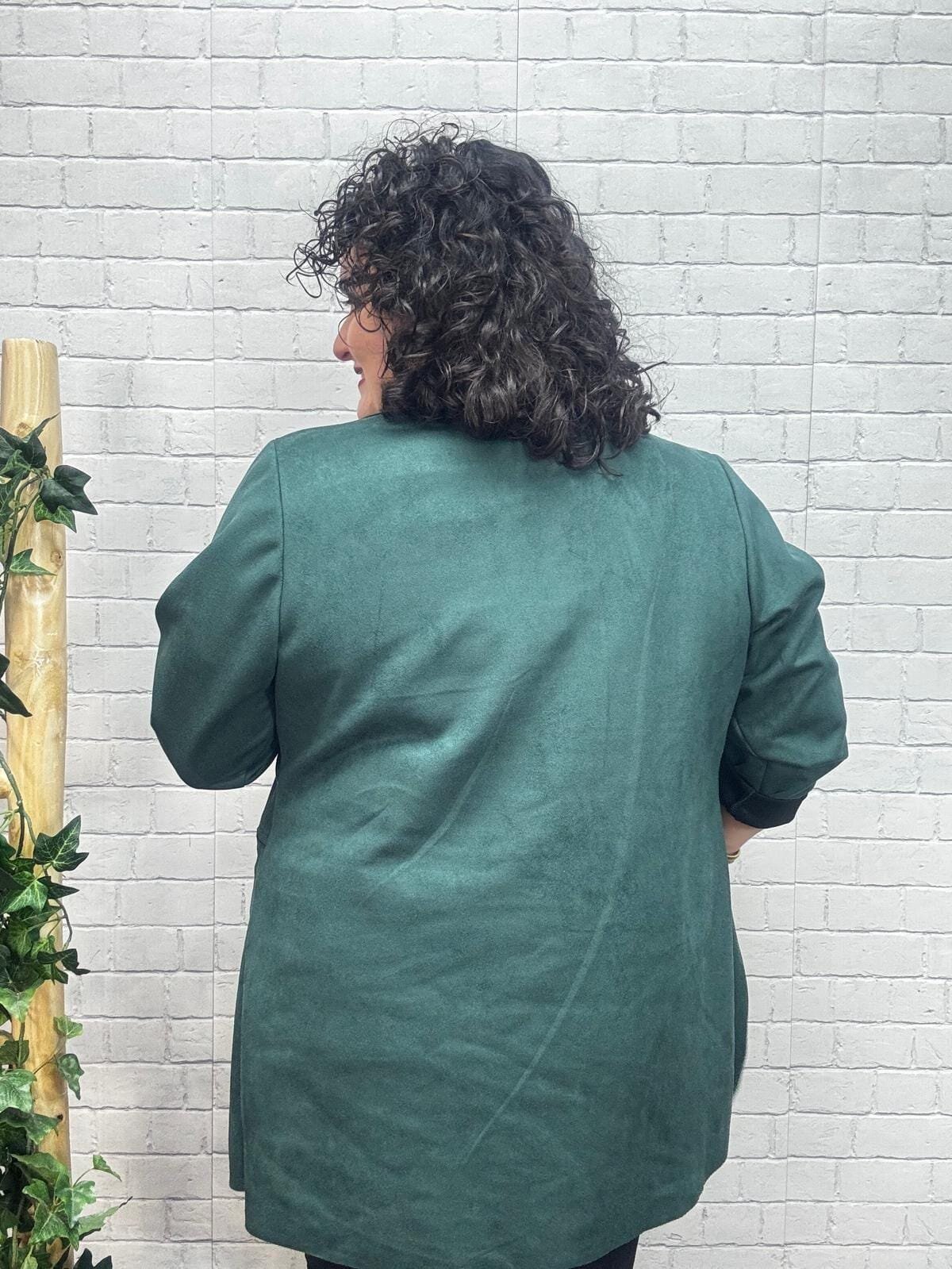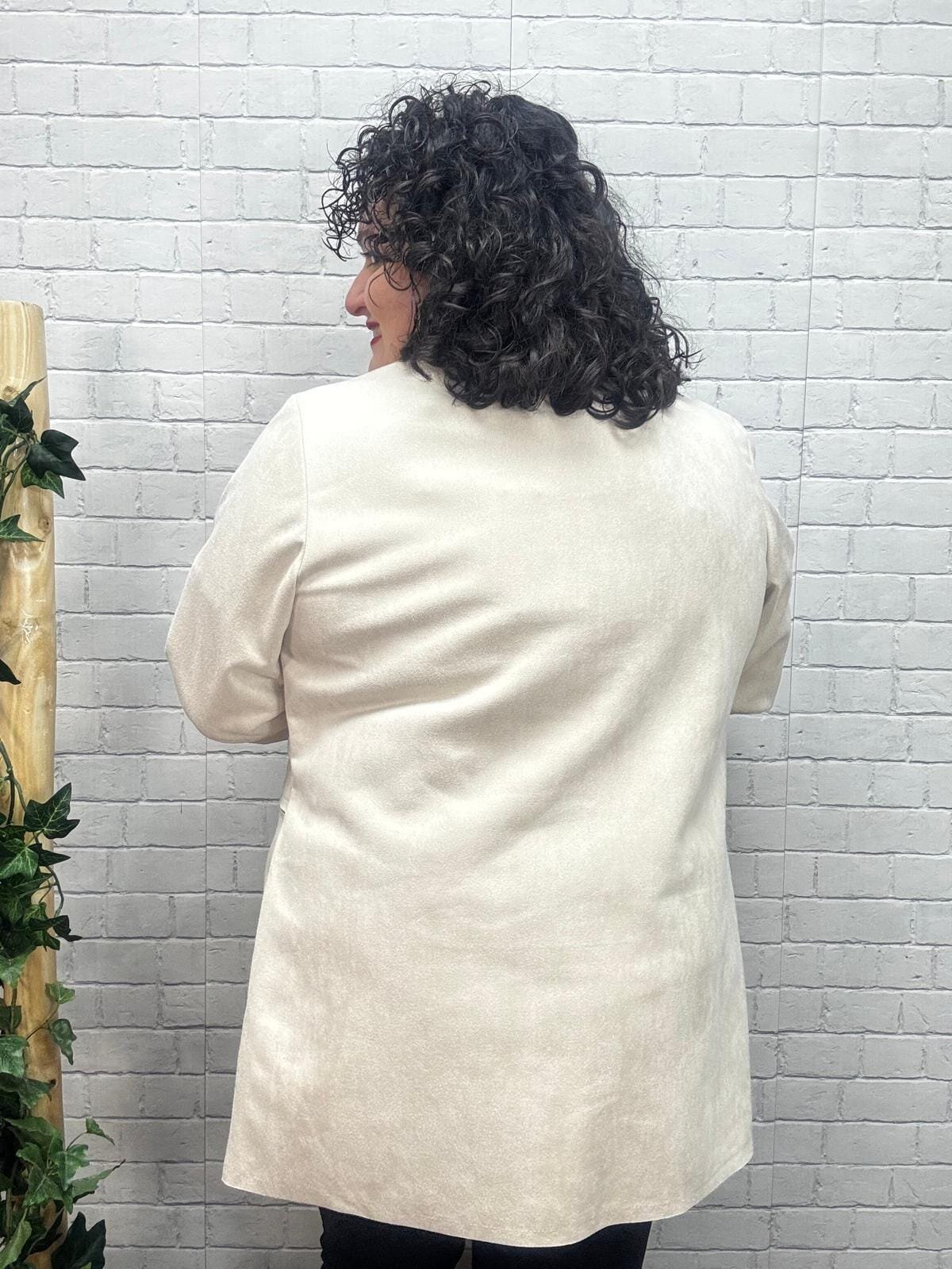 La chaqueta tipo antelina es una prenda elegante y versátil que destaca por su suavidad, su estilo atemporal y su capacidad para complementar cualquier look. Confeccionada en un tejido de 95% poliéster y 5% elastán, ofrece un tacto aterciopelado característico de la antelina, junto con la elasticidad justa para proporcionar comodidad y libertad de movimiento.