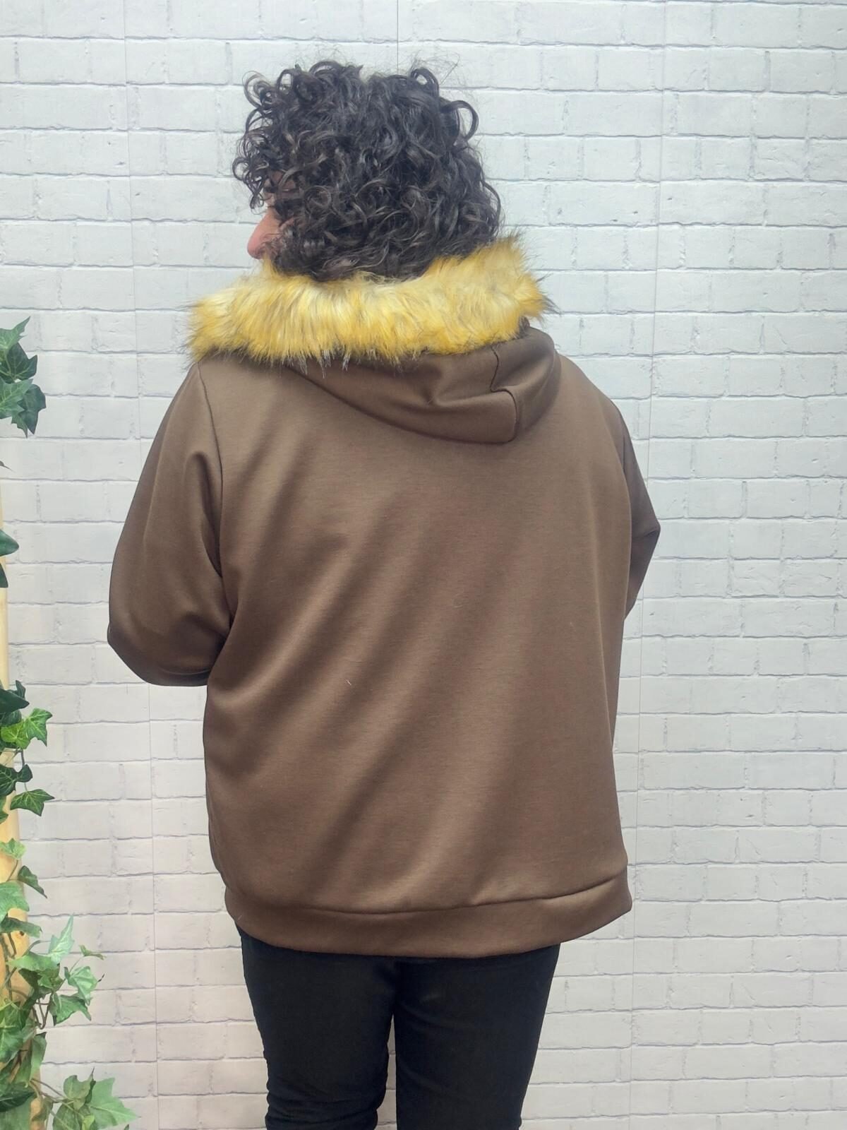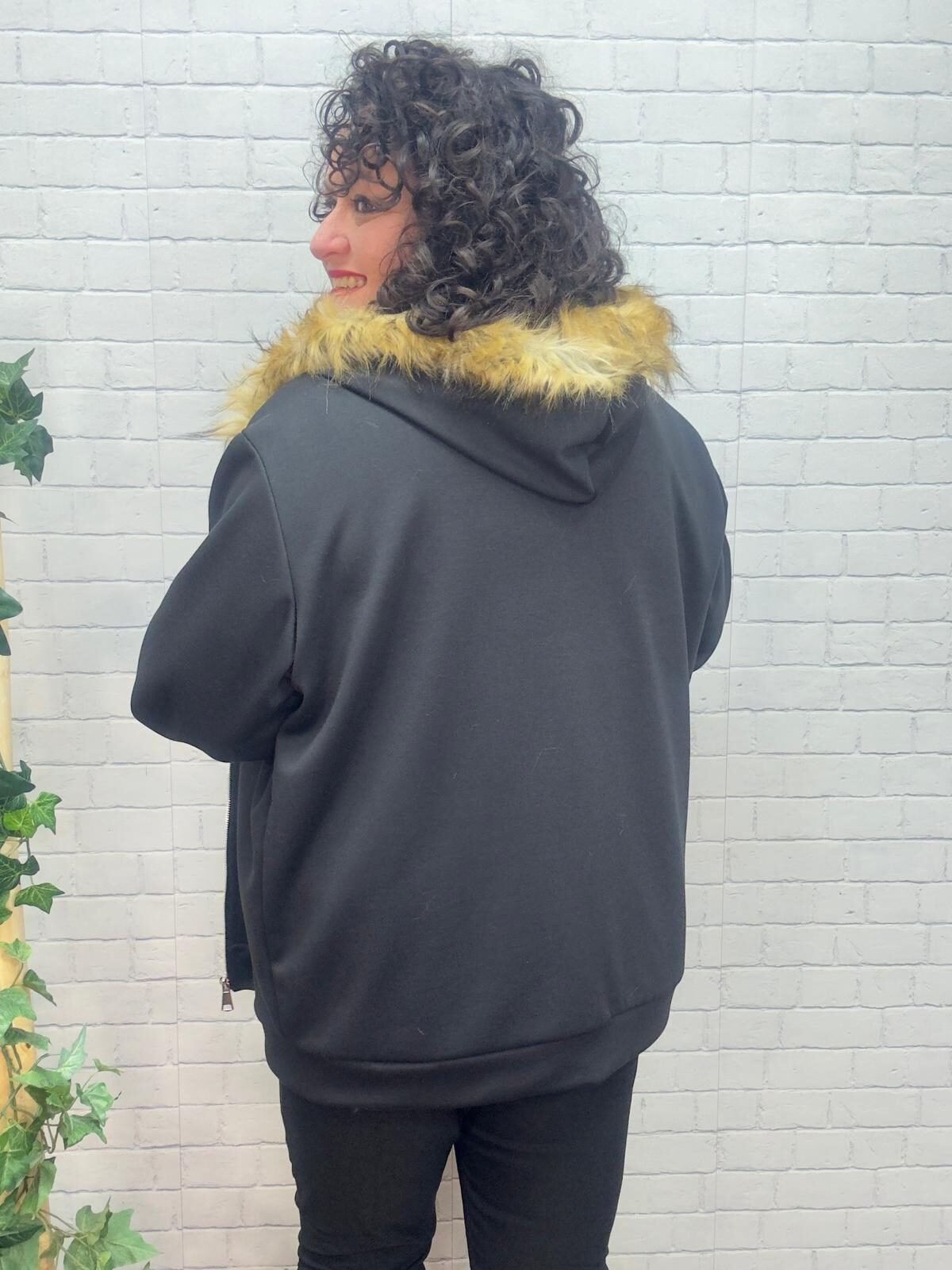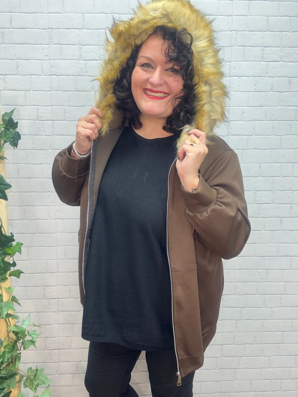 Esta chaqueta curvy con capucha de pelo es una prenda imprescindible para los meses más frescos. Diseñada especialmente para mujeres de talla grande, ofrece un ajuste cómodo que no marca y realza la silueta con naturalidad.