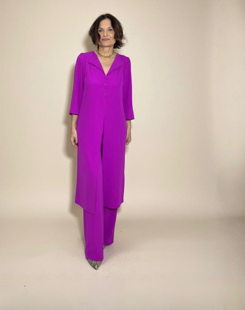 Un conjunto pensado para mujeres que quieren sentirse seguras, elegantes y protagonistas, con una prenda especial que destaca por su color, su caída y su diseño cuidado. Elegancia con carácter para momentos inolvidables. ✨💜