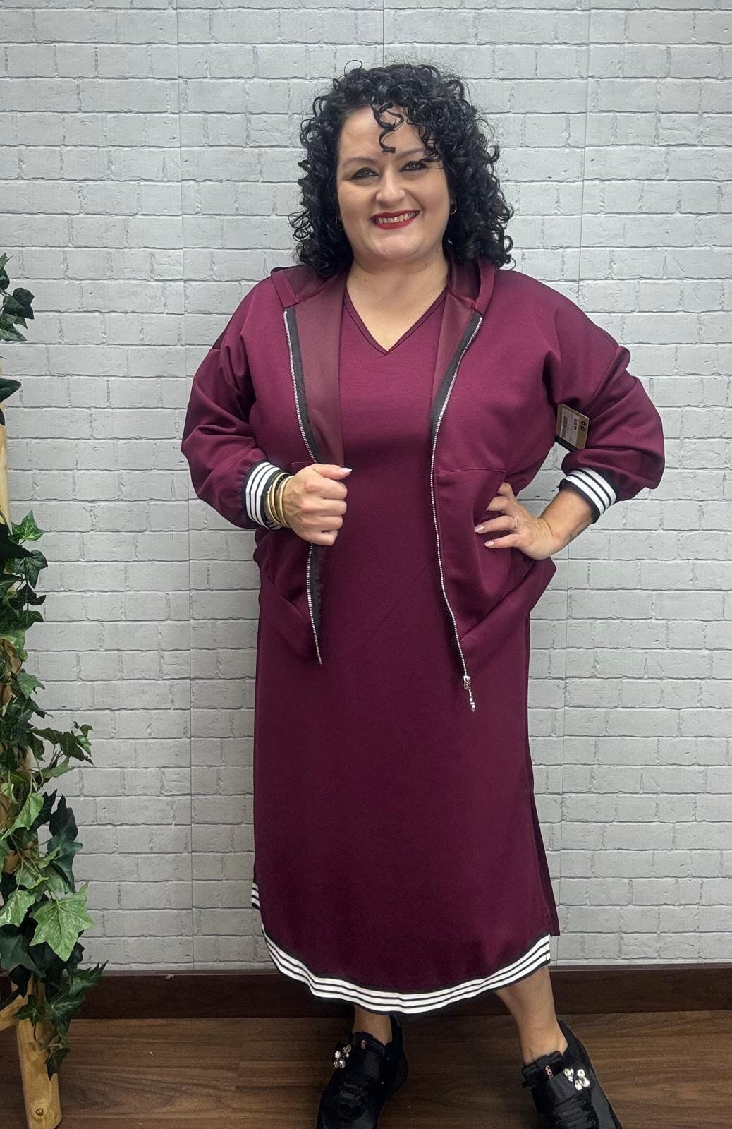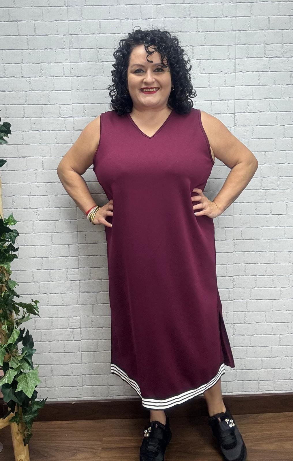 Este vestido burdeos deportivo midi es la combinación perfecta entre comodidad y estilo urbano. Su diseño sin mangas y corte recto favorece la silueta curvy, ofreciendo libertad de movimiento y una caída fluida que estiliza sin marcar.