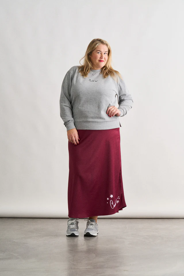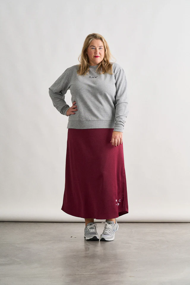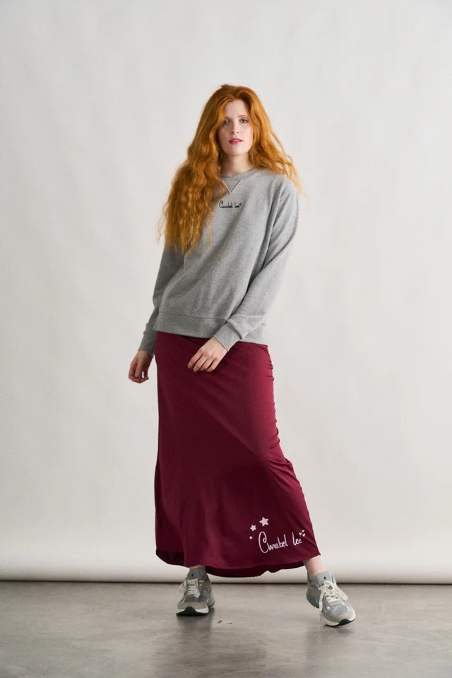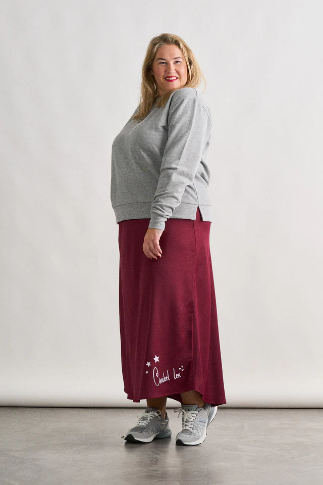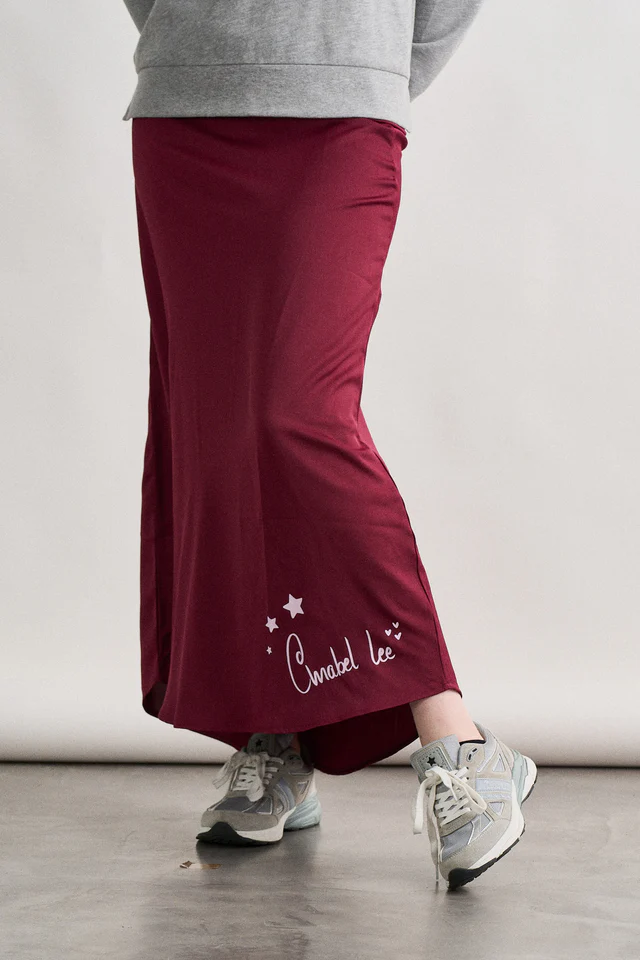 Falda Satinada Burgundy Anabel Lee T-S/2XL Corte Evasé