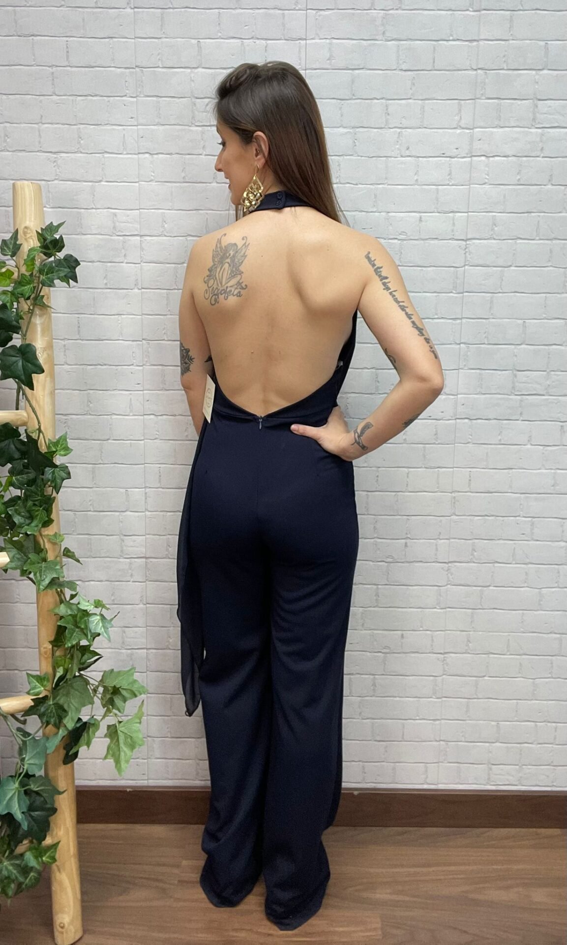 Descubre la elegancia fresca y moderna con este mono largo en tono marino, una prenda perfecta para mujeres que buscan un look sofisticado, diferente y lleno de estilo. Su diseño con escote halter drapeado crea un efecto fluido que realza el busto y estiliza la parte superior del cuerpo, aportando un aire elegante y delicado.