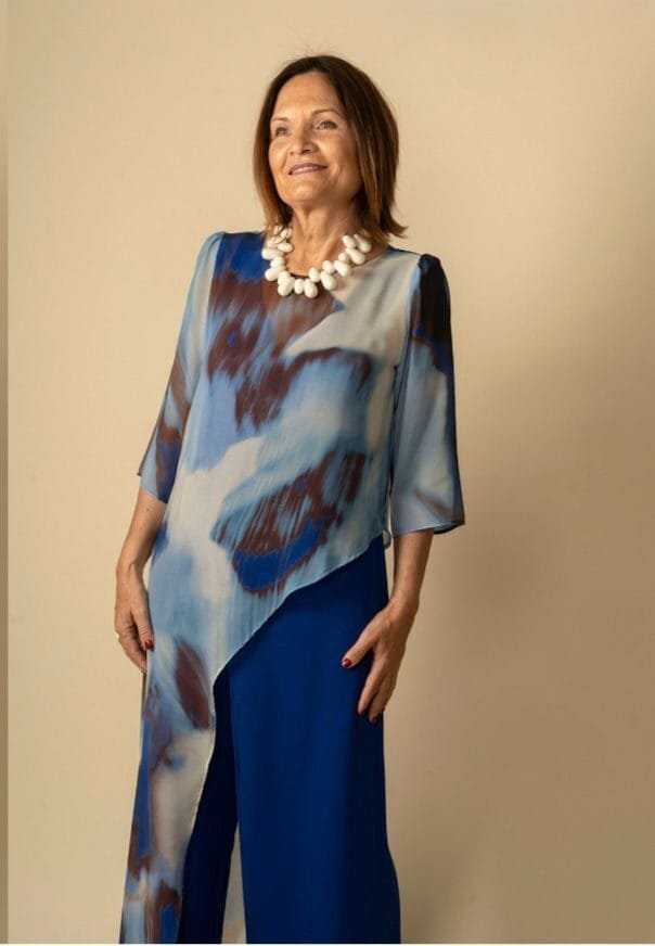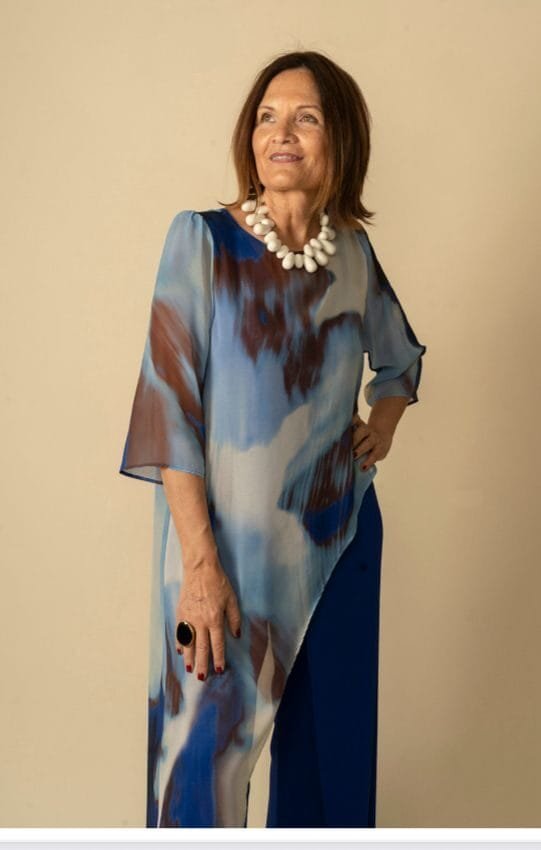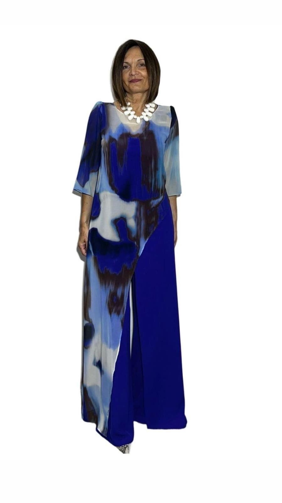 Este mono azul eléctrico con capa asimétrica de gasa estampada es puro estilo y sofisticación. El diseño sin mangas estiliza la figura mientras que la capa fluida aporta un toque artístico y de movimiento que roza lo etéreo. Ideal para ocasiones especiales, cenas o eventos donde quieras destacar con elegancia sin renunciar a la comodidad. Su caída favorecedora y su color vibrante realzan cualquier silueta, y su confección en tallas inclusivas lo convierte en una opción segura y versátil. Además, es una pieza única que no pasa desapercibida.
