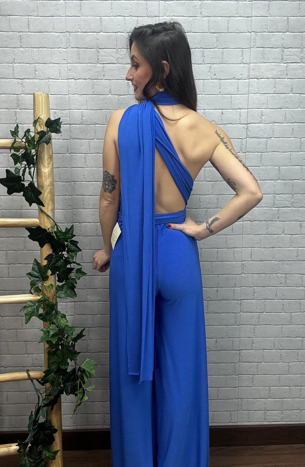 Confeccionado en un tejido suave, elástico y de caída fluida, este mono garantiza comodidad durante todo el día (o la noche), adaptándose a tu cuerpo sin renunciar al estilo. Su color azul vibrante aporta frescura y luminosidad, ideal para quienes buscan un look elegante pero con personalidad.
