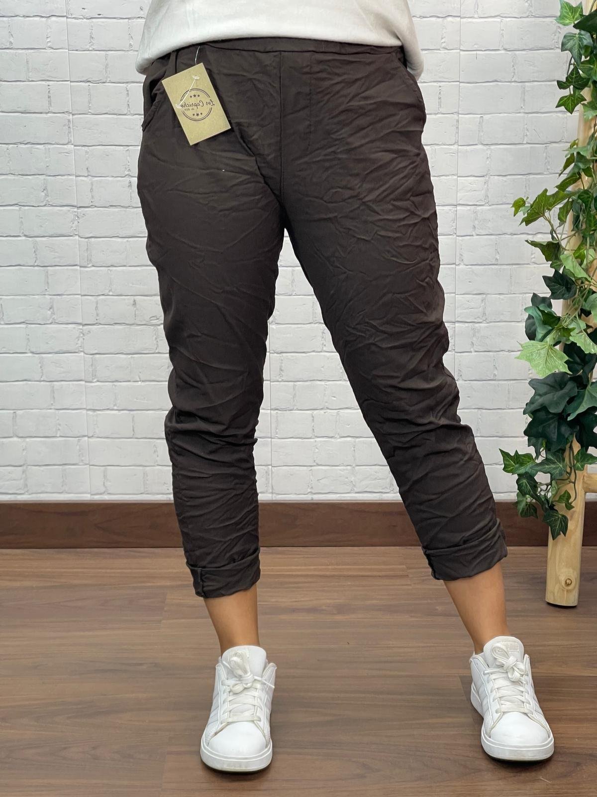 El pantalón elástico destacado por su versatilidad y comodidad presenta una cintura ajustable con goma y cordel, ofreciendo un ajuste personalizado. Con un corte tipo pitillo y bolsillos en la parte delantera, esta prenda es extraordinariamente versátil, adaptándose tanto a ocasiones diarias como a eventos más formales, dependiendo de cómo se combine. Se convierte en un elemento imprescindible en el fondo de armario debido a su capacidad para adaptarse a diferentes estilos.