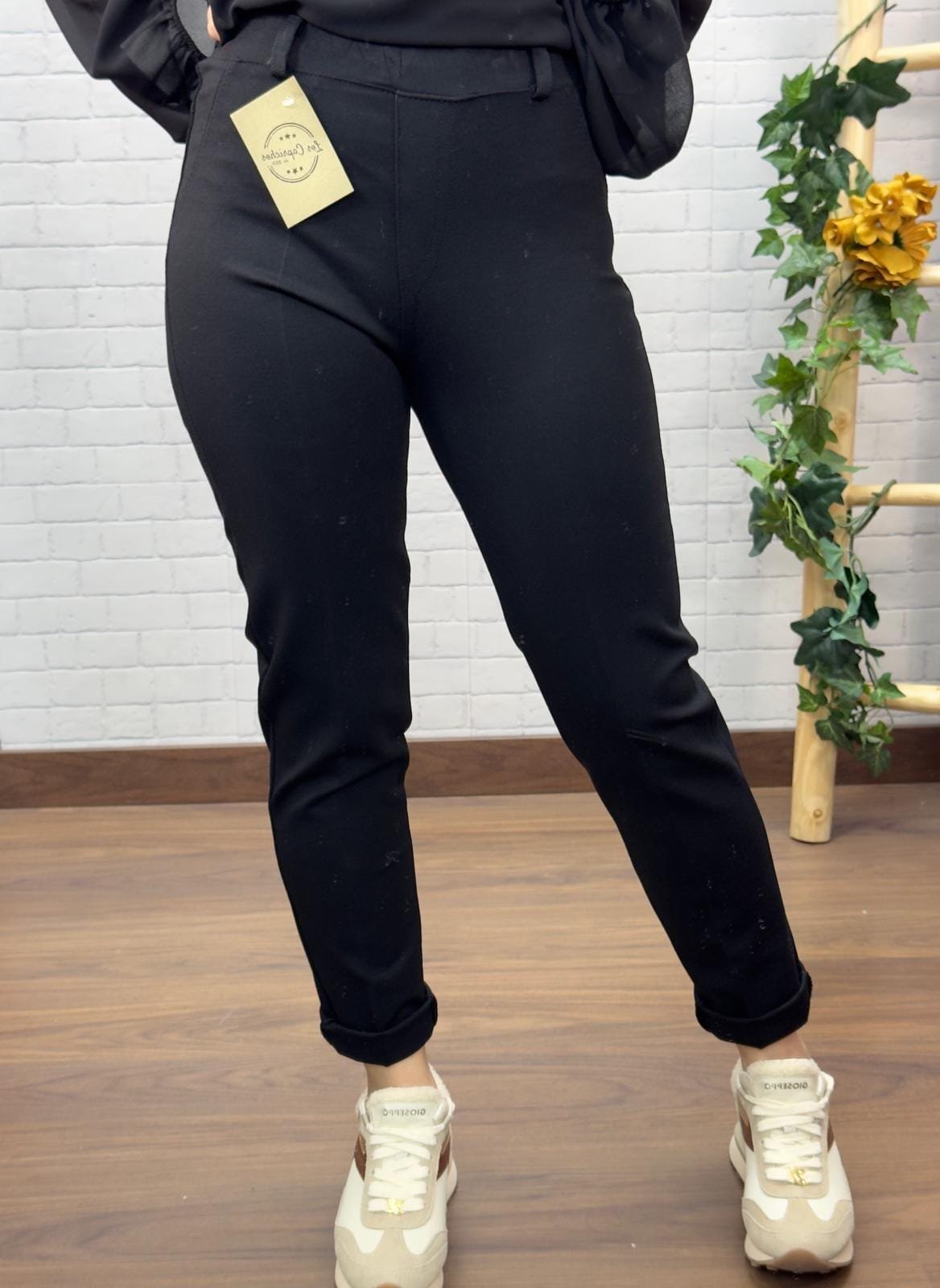 El color negro aporta un toque sofisticado que combina fácil con blusas, camisas básicas o un jersey oversize. Su cintura bien estructurada define la figura y aporta sujeción, mientras que el bajo ligeramente doblado añade un detalle moderno y versátil.
