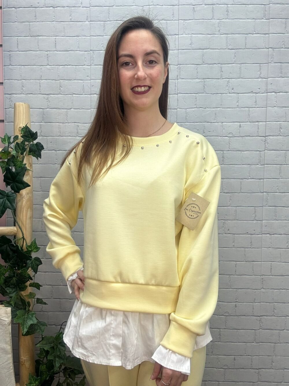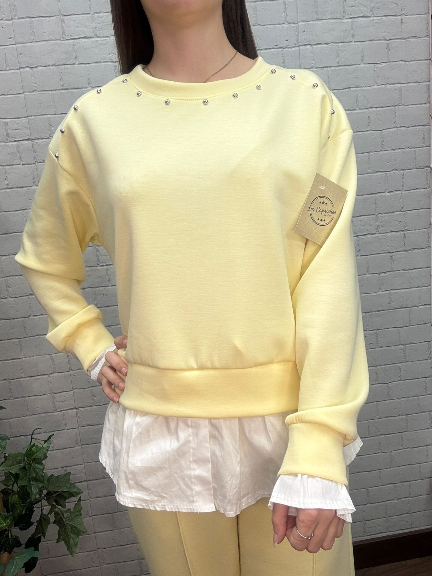 Una sudadera femenina, actual y fácil de combinar que aporta personalidad sin perder comodidad. Si buscas una prenda diferente, luminosa y con detalles especiales, esta es tu elección perfecta. 💛