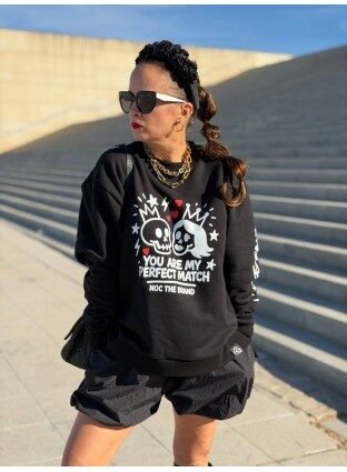 Descubre la sudadera negra perfecta para elevar tus looks urbanos con un toque atrevido y moderno. Su print frontal “You Are My Perfect Match” aporta un aire divertido, gráfico y muy actual, ideal para expresar tu estilo con autenticidad. Fabricada en un tejido suave y cómodo, esta prenda se convierte en un básico imprescindible para el día a día, manteniendo el equilibrio entre moda, confort y actitud.