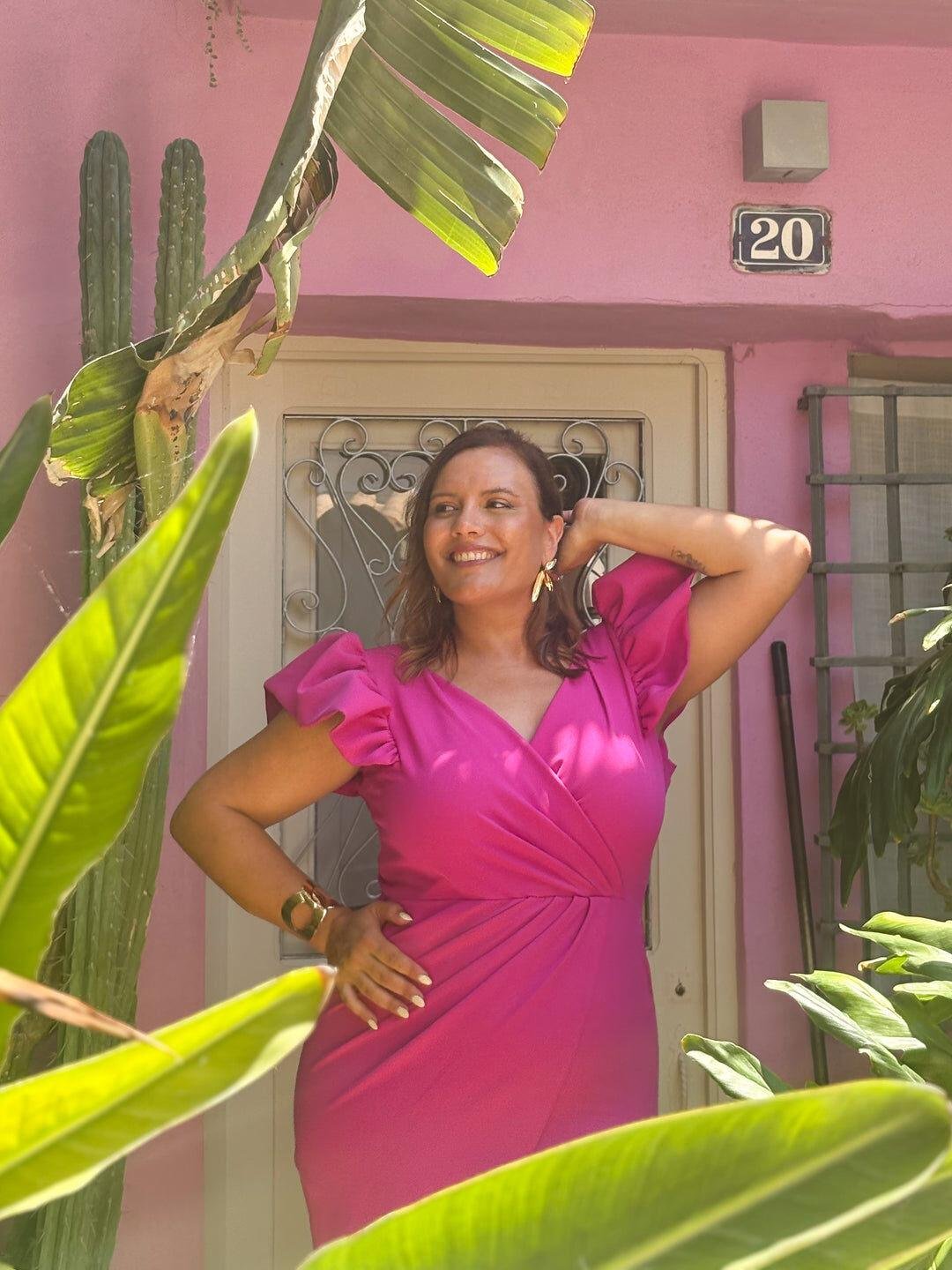 Este vestido fresa con escote cruzado y mangas abullonadas es pura magia para realzar tu silueta con elegancia y frescura. Su corte envolvente estiliza la figura de forma natural, mientras que el drapeado frontal y la abertura asimétrica en la falda aportan movimiento y feminidad. Ideal para eventos especiales, cenas o celebraciones donde quieras sentirte poderosa y radiante. La tela suave y el diseño pensado para cuerpos reales lo convierten en una prenda tan cómoda como impactante. ¡Disponible en tallas inclusivas y con envío rápido!