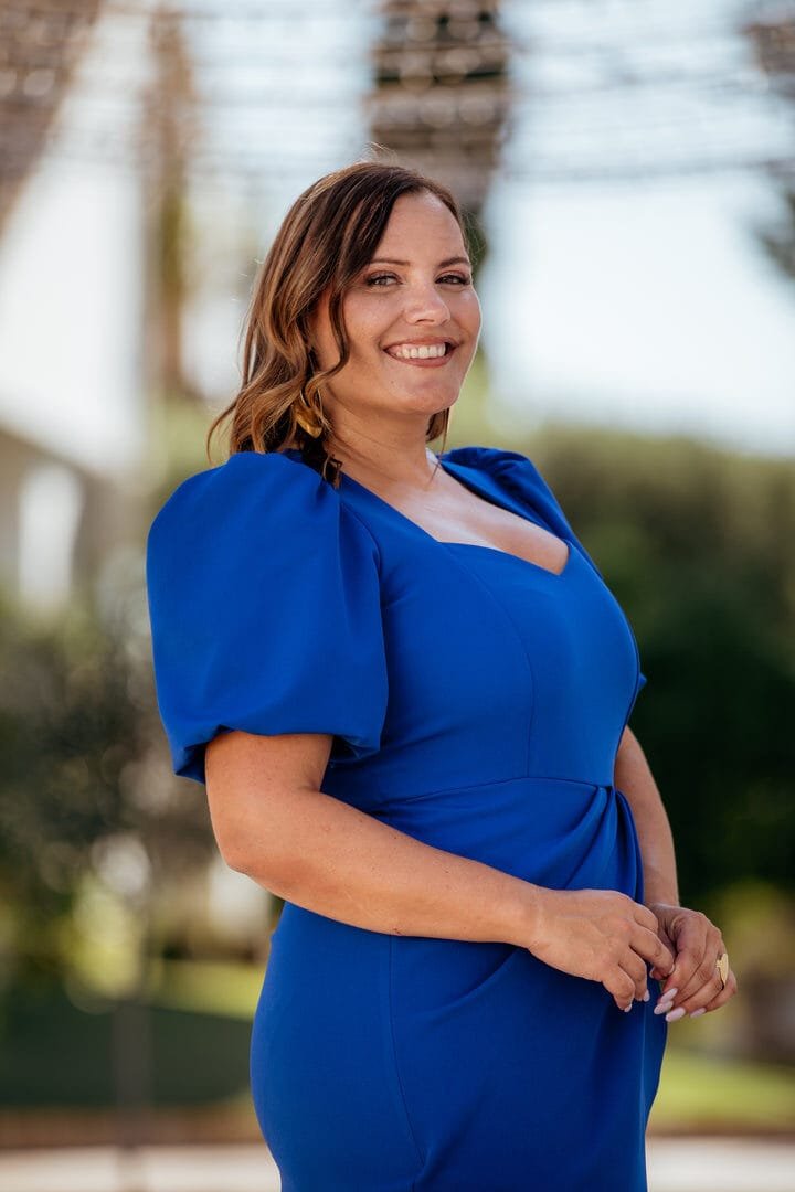 La falda cruzada aporta comodidad y movimiento, al mismo tiempo que estiliza, convirtiendo este vestido en una opción práctica y con mucho estilo. Su color azul tinta lo convierte en un modelo sofisticado, perfecto para eventos de día o de noche, celebraciones formales o cenas especiales, ya que combina elegancia con modernidad.